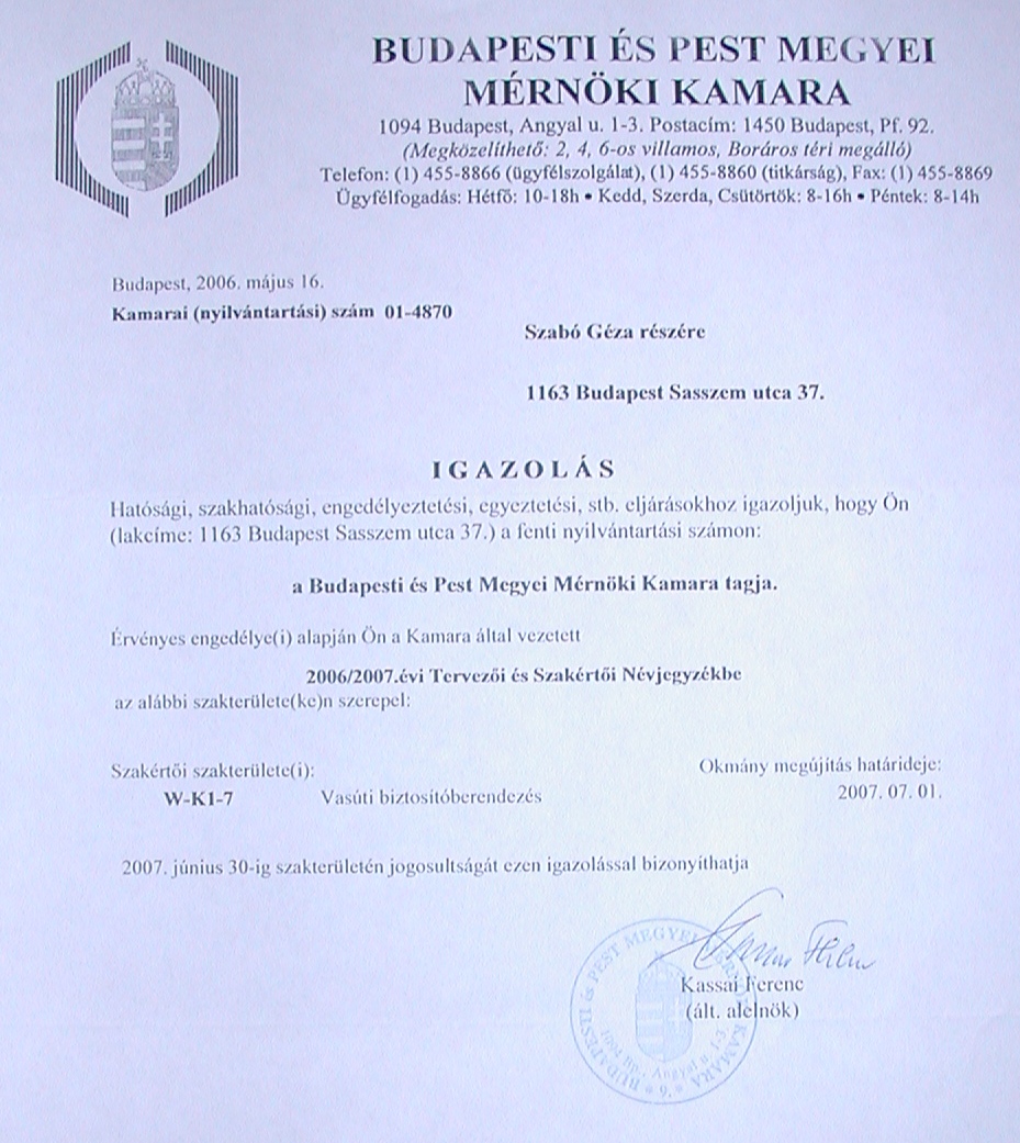 W-K1-7, Vasúti biztosítóberendezési szakértő), (nyilvántartási